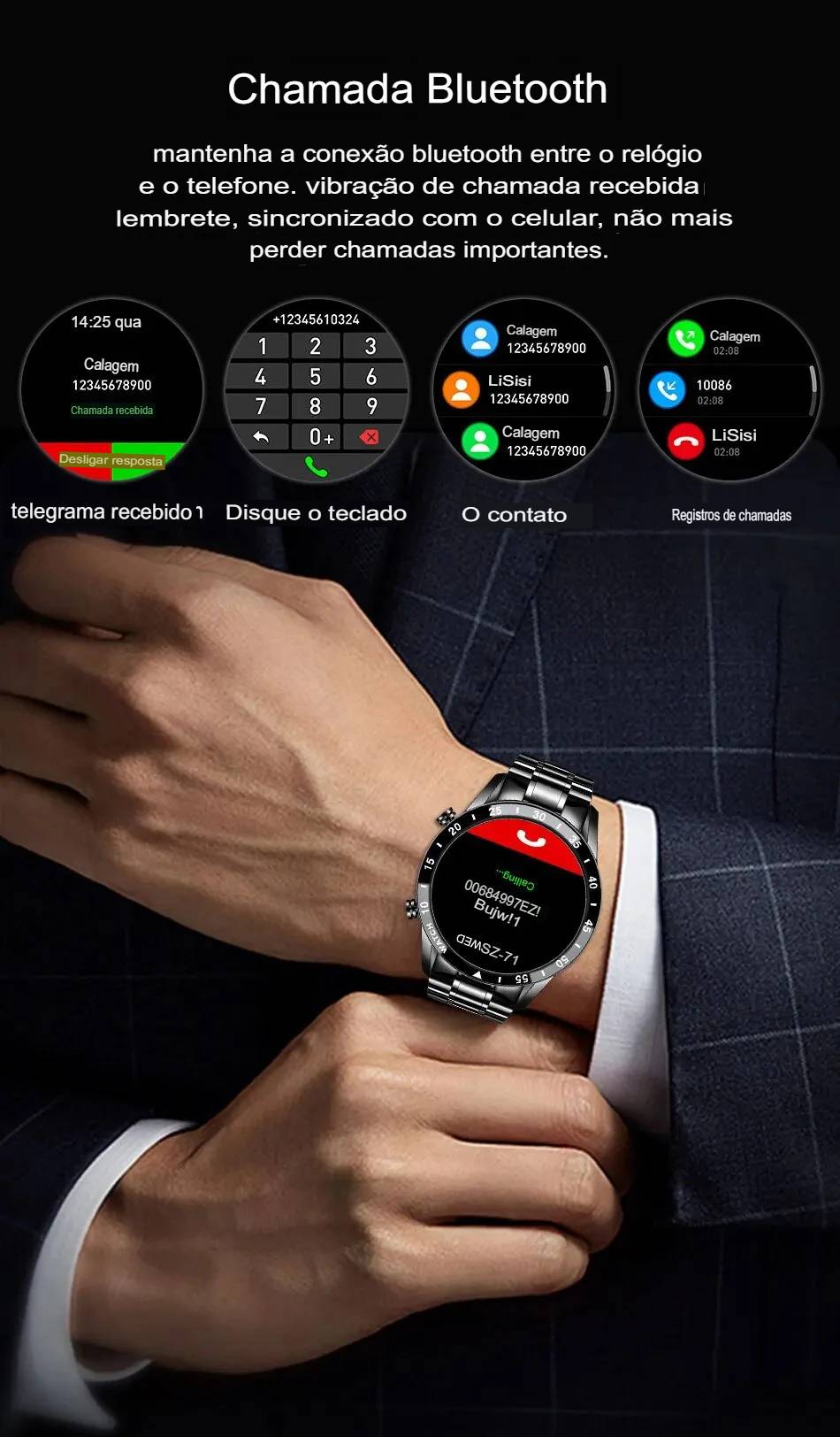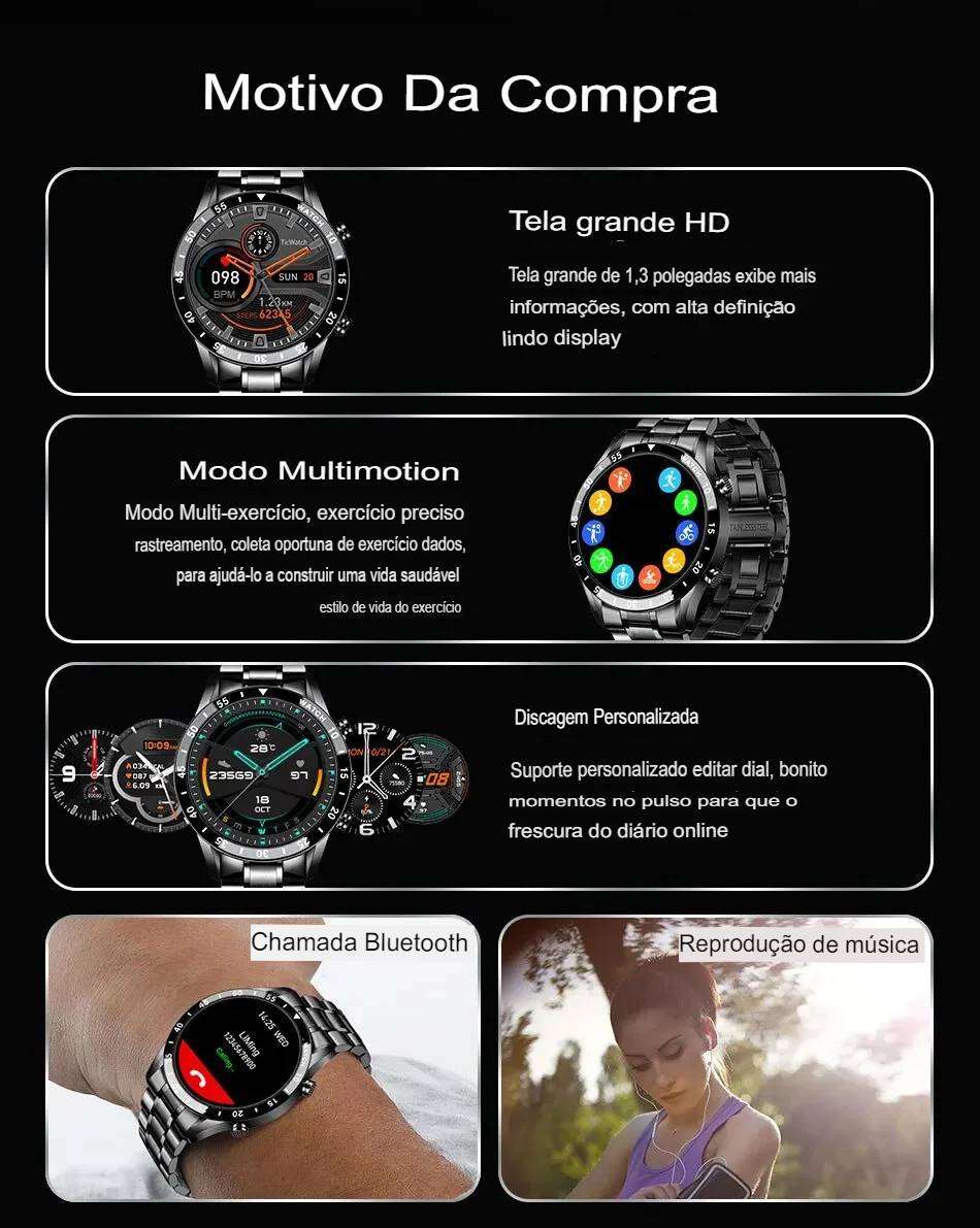 Após ter recebido o relógio, carregue-o por favor primeiramente. Porque depois de muito tempo de logística, a bateria do relógio está fraca. Antes de usar, digitalize o código QR no manual para baixar o aplicativo e conectá-lo ao relógio com o aplicativo.